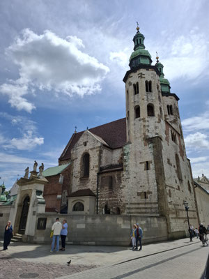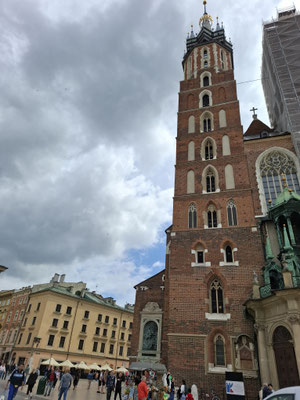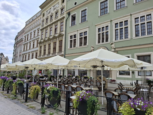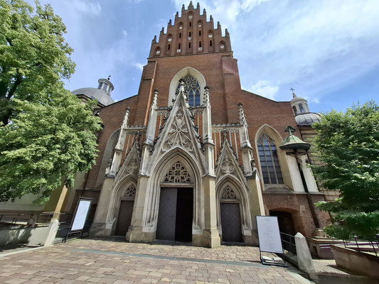 uns kandierte Nüsse, Schokokirschen und anderen Kindheitserinnerungskram zu kaufen und wir legen eine Zuckerpause in einem schönen Café ein. Wir genießen Kaffee, Süßkram und den Blick auf die Bazylika Dominikanów pw. Świętej Trójcy / Basilika der Heiligen Dreifaltigkeit, einer gotischen Klosterkirche der Dominikaner.