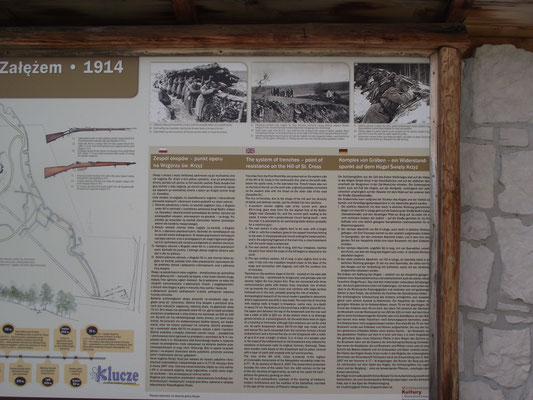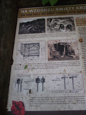 Der Hügel auf dem die Burg thront bezeichnet sich ebenfalls nach dem Heiligen Kreuz. Während des Ersten Weltkriegs, im November 1914, gruben polnische Legionäre umfangreiche Schützengräben in den Hang. In der Schlacht von Krzywopłoty (17.–18. November) verteidigten etwa 440 Legionäre den Hügel gegen russische Einheiten – sie konnten den Angriff stoppen, erlitten aber schwere Verluste: 46 Tote sowie 131 Verwundete oder Gefangene. Alle Toten wurden auf dem Friedhof Bydlin begraben; dort erinnert ein sieben Meter hohes steinernes Kreuz an sie. Wie so oft wird einem die Sinnlosigkeit des Krieges bewusst: junge Männer, wahllos hierher geschickt, um einen unbedeutenden Hügel zu verteidigen und dafür zu sterben.
