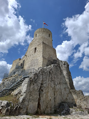 Die Burg Rabsztyn liegt oberhalb des gleichnamigen Ortes bei Olkusz in der Woiwodschaft Kleinpolen. Sie gehört zu den sogenannten „Adlerhorst“-Burgen, einer Kette mittelalterlicher Befestigungen, die im 14. Jahrhundert an der damaligen Grenze zwischen dem Königreich Polen und Böhmen errichtet wurden. Bereits im 13. Jahrhundert befand sich an dieser Stelle eine erste Befestigung. Unter König Kasimir dem Großen wurde die Anlage ausgebaut, um die Region zu sichern. Im 16. Jahrhundert erhielt die Burg ein repräsentatives Renaissanceschloss, das den unteren Teil der Anlage bildete. Die obere Burg, auf einem Felsen errichtet, diente als Wehr- und Wohnbereich. Während der schwedischen Invasion 1657 wurde Rabsztyn schwer beschädigt und anschließend nicht wieder vollständig aufgebaut. Erst in den 90er Jahren erfolgten Instandsetzungarbeiten. Für unseren Geschmack war es fast zu gut saniert. Die Außenansicht ist das schönste, im Inneren gab ein Café, Ritterspiele für Kinder... ein wenig zu touristisch aber für Familen sicher lohnenswert.